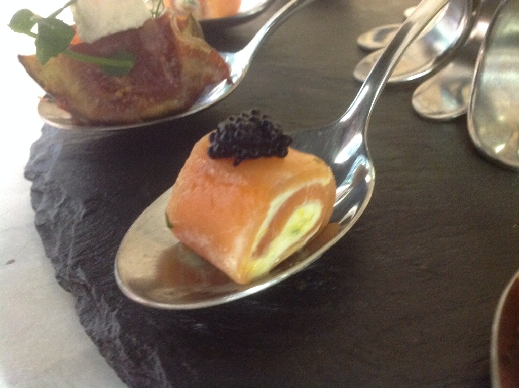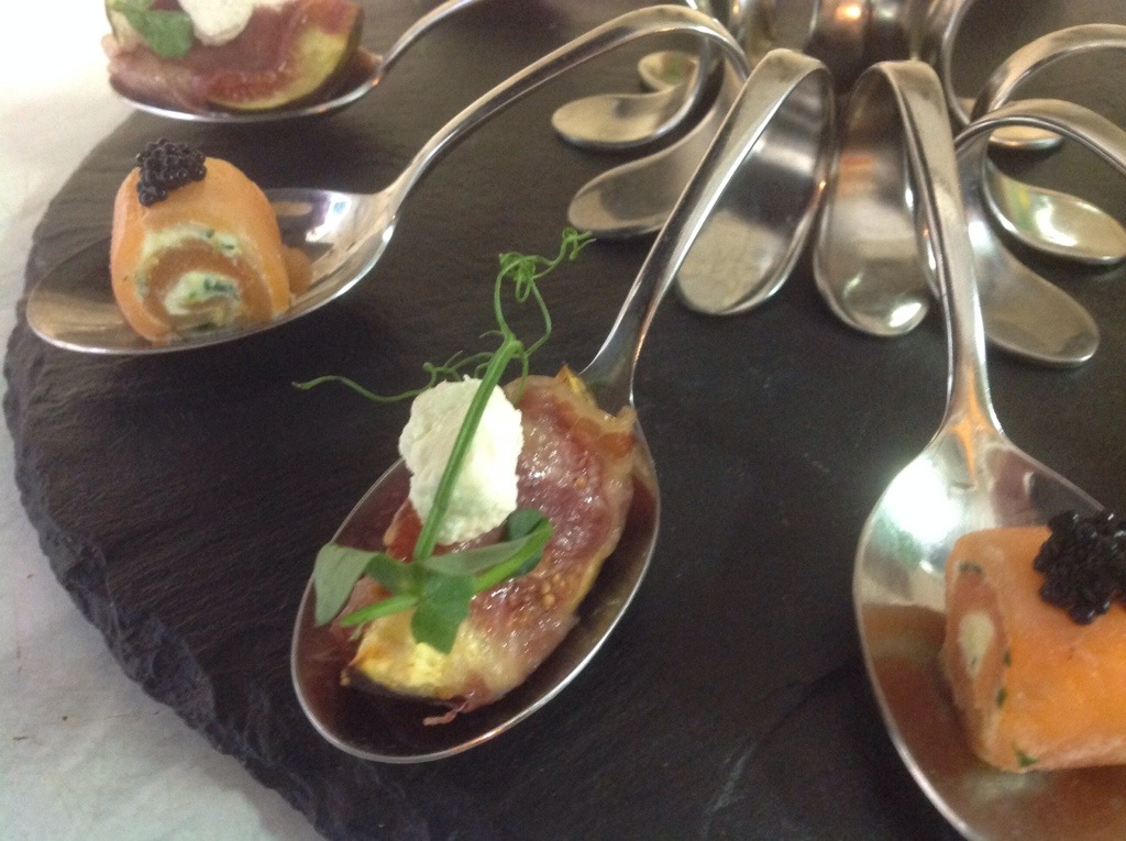 Canapés from this week include smoked trout roulade with caviar & local seasonal figs wrapped in Bayonne ham roasted & served with Rocamadour goats cheese.