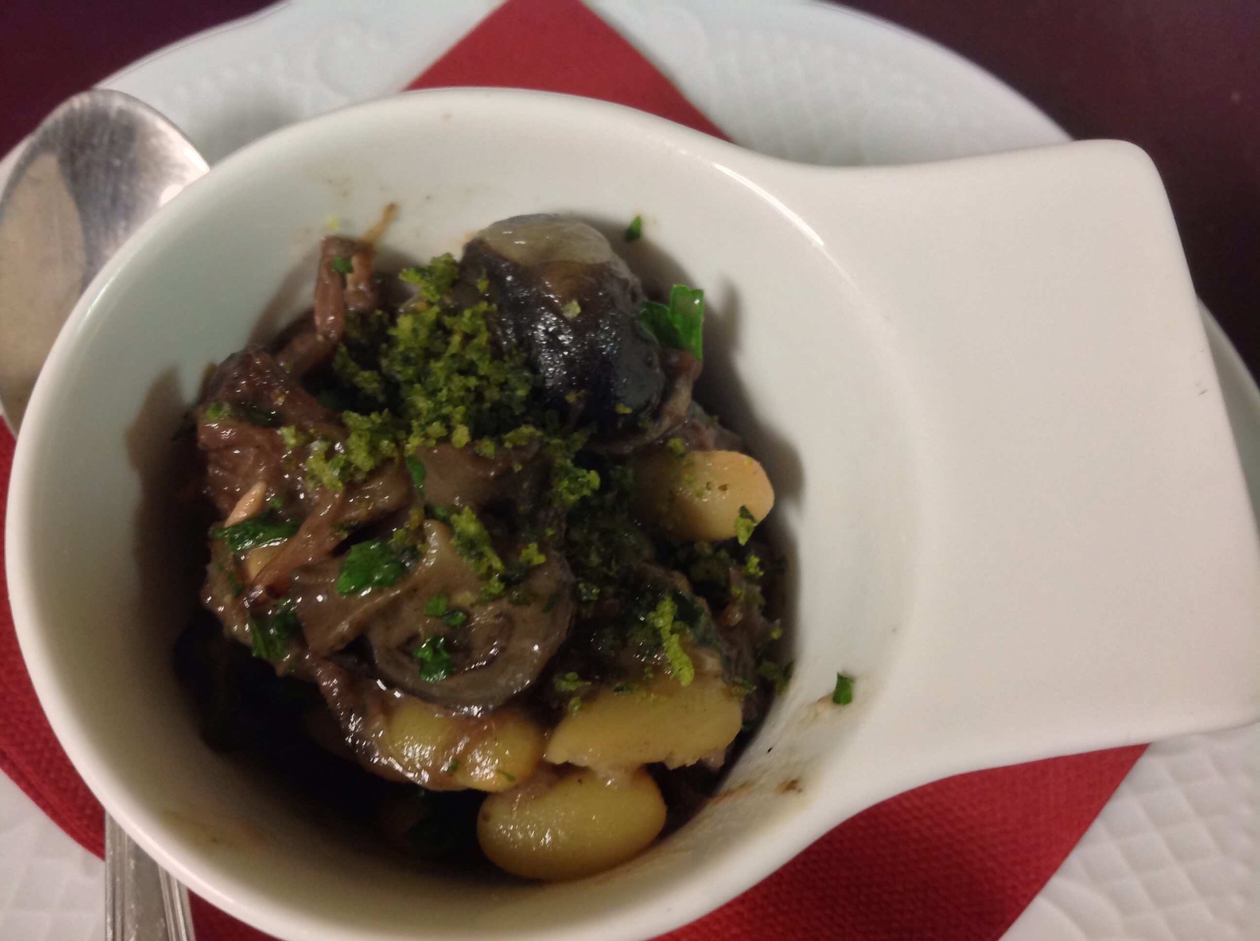 Food on board, Ingredients Amuse Bouche Posted by Mike Crowson on October 12, 2014November 7, 2014 A ” Cassoulet ” of escargot (snails) with slow braised oxtai & parsley, garlic & walnut crumble. Cooking the snails in the cooking liqueur from the oxtail means they take on all the great flavours from the sauce. FacebookShareLike Loading... Related