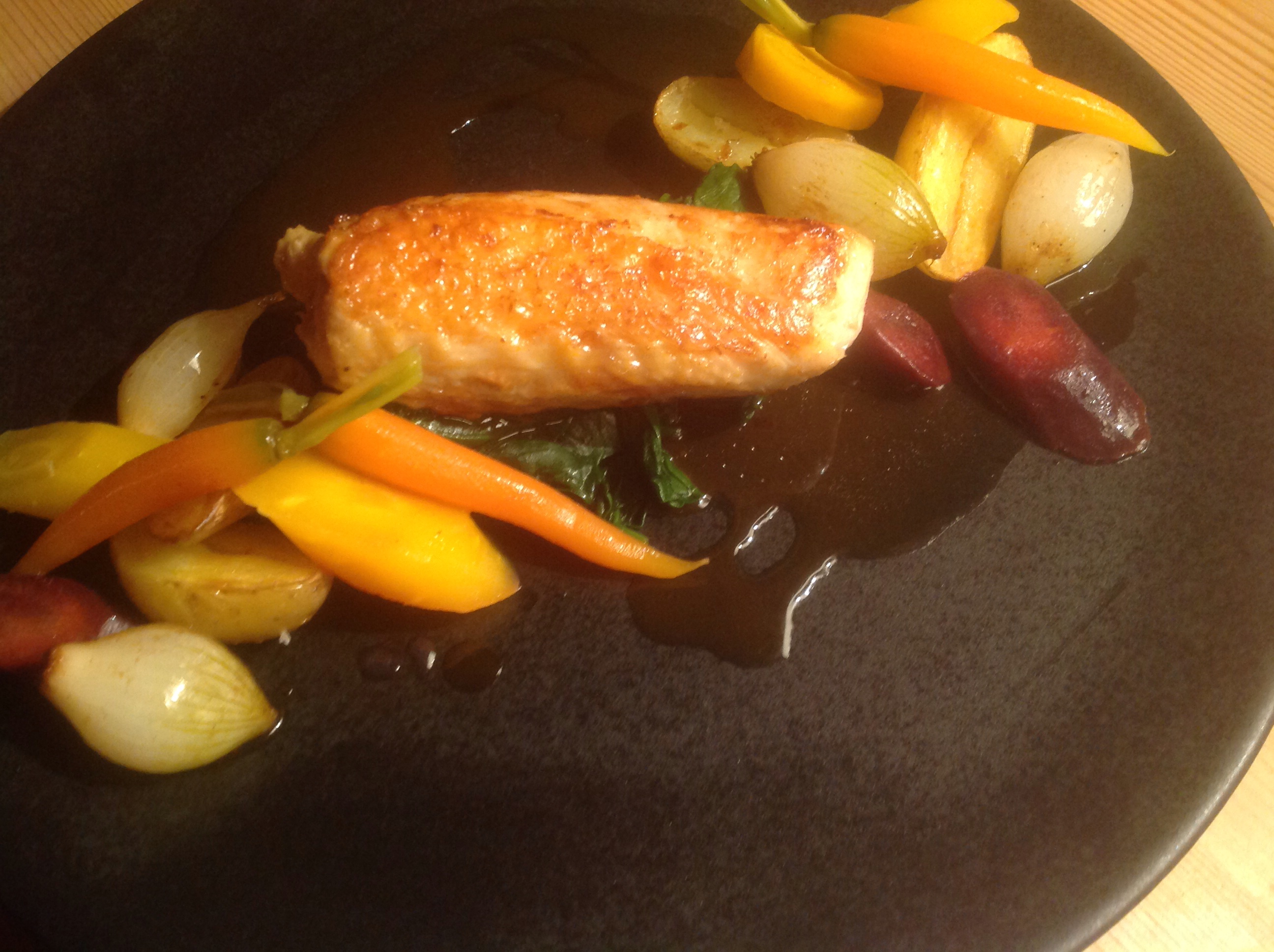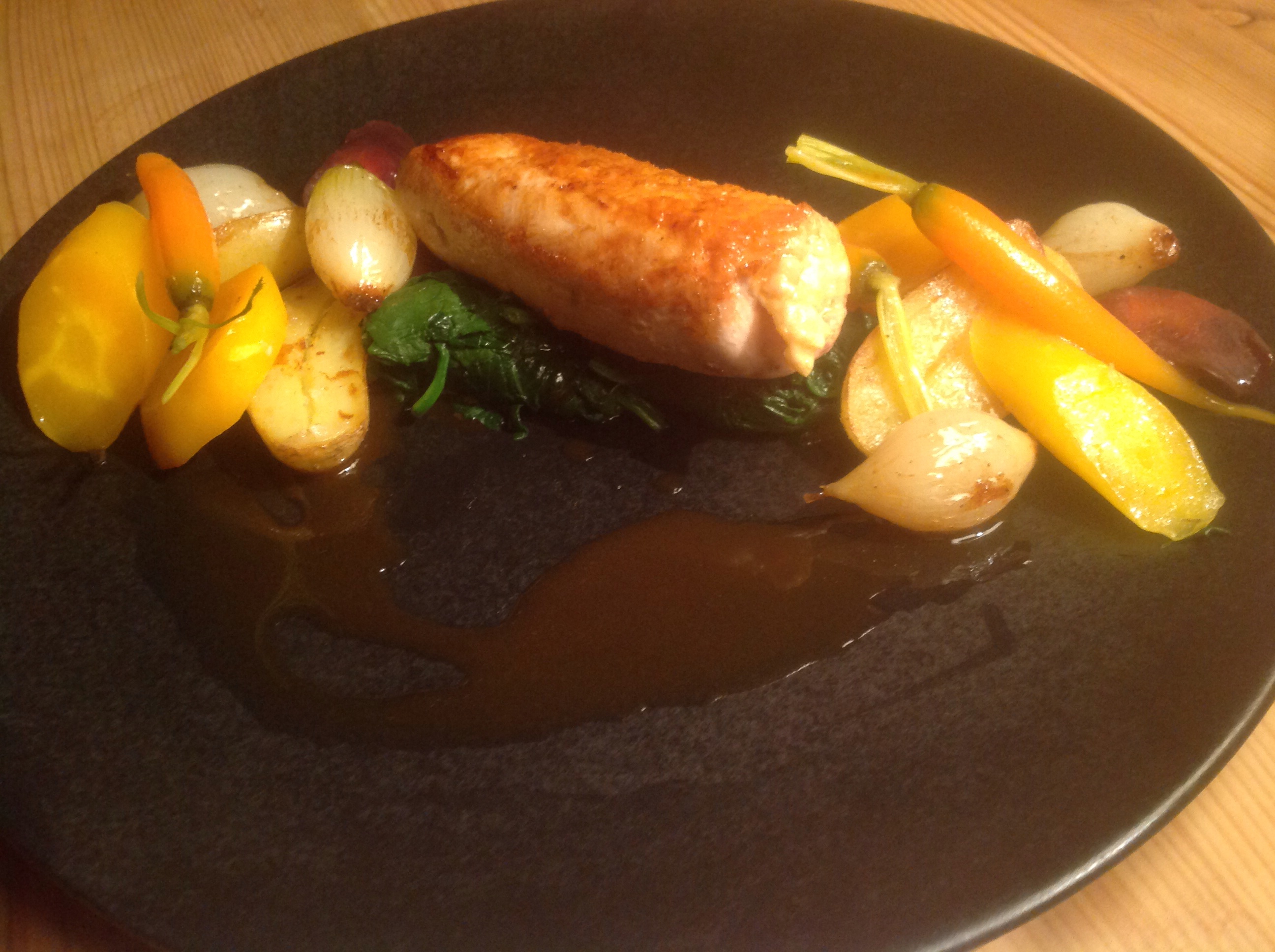Rosa Guinea fowl & carrots Posted by Mike Crowson on February 8, 2015February 8, 2015 Rolled supreme of Guinea fowl on a bed of spinach with purple & yellow carrots, baby carrots, braised silver skin onions, roasted ratte potatoes & Madeira sauce. FacebookShareLike Loading... Related